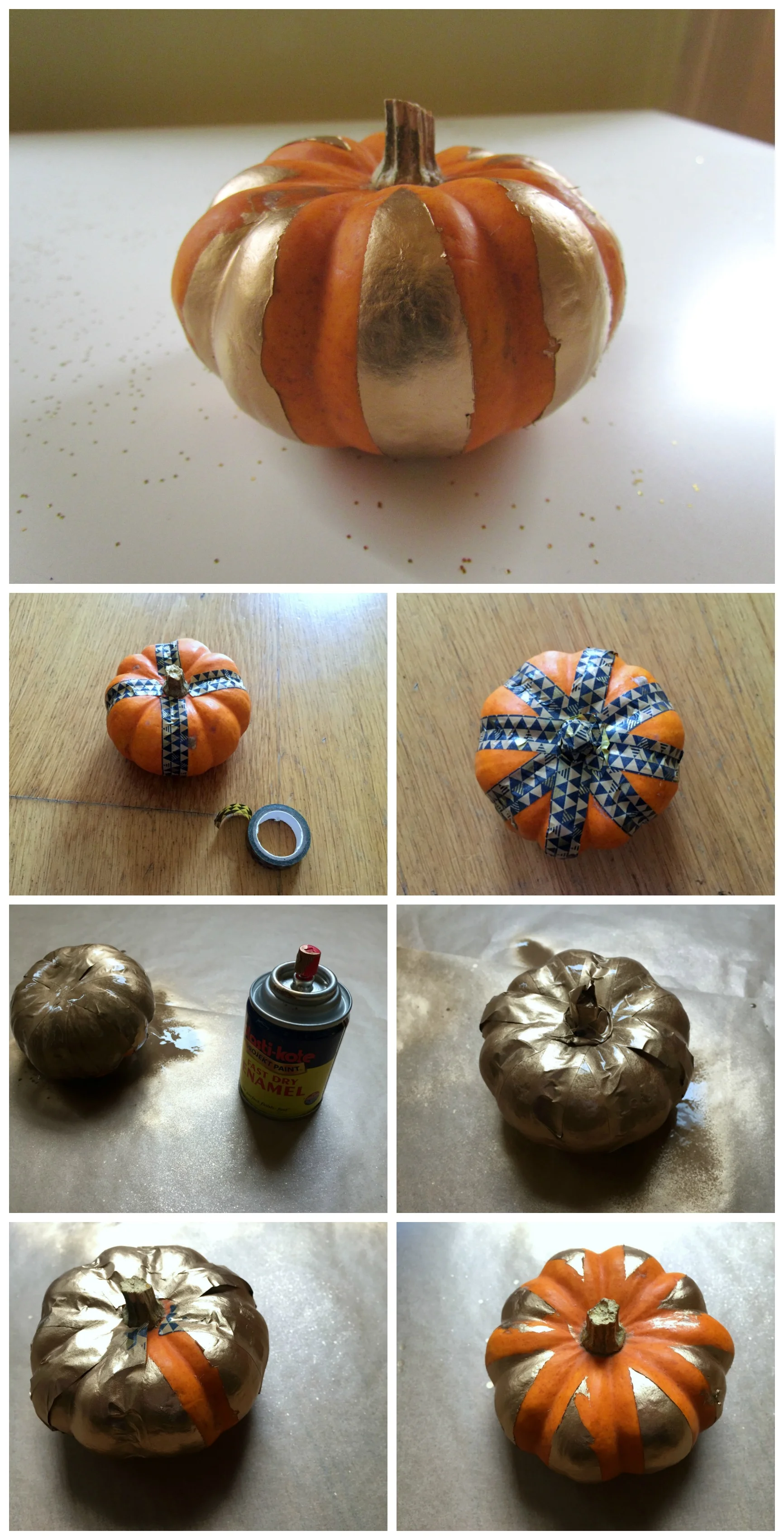 2. Stick tape in between this cross. Add stripes of tape in between the tape already on the pumpkin so that there are exposed stripes of pumpkin.