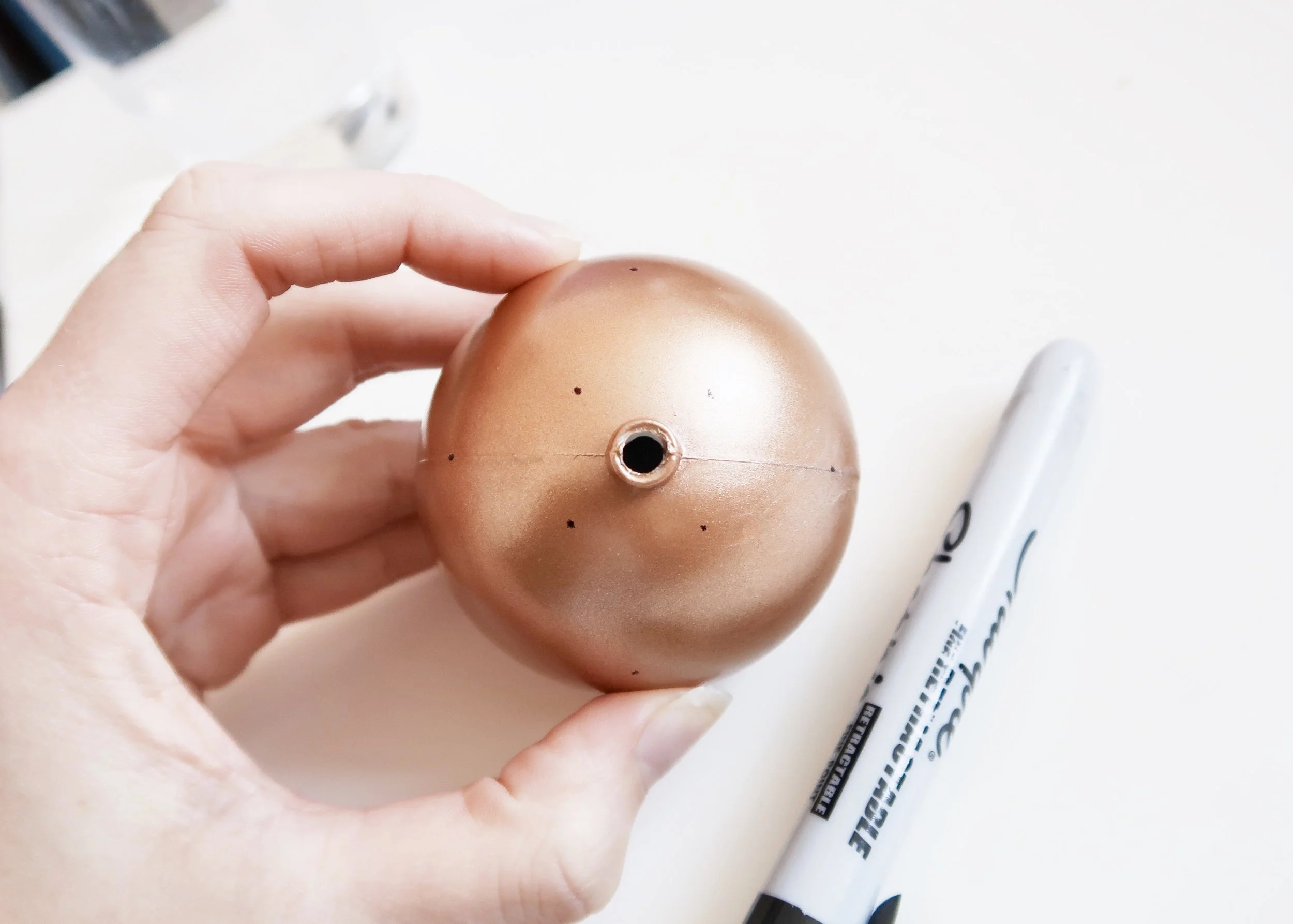 Grab a permanent marker, and whilst looking down on the bauble, mark at with dots a rough guide for your mandala pattern.