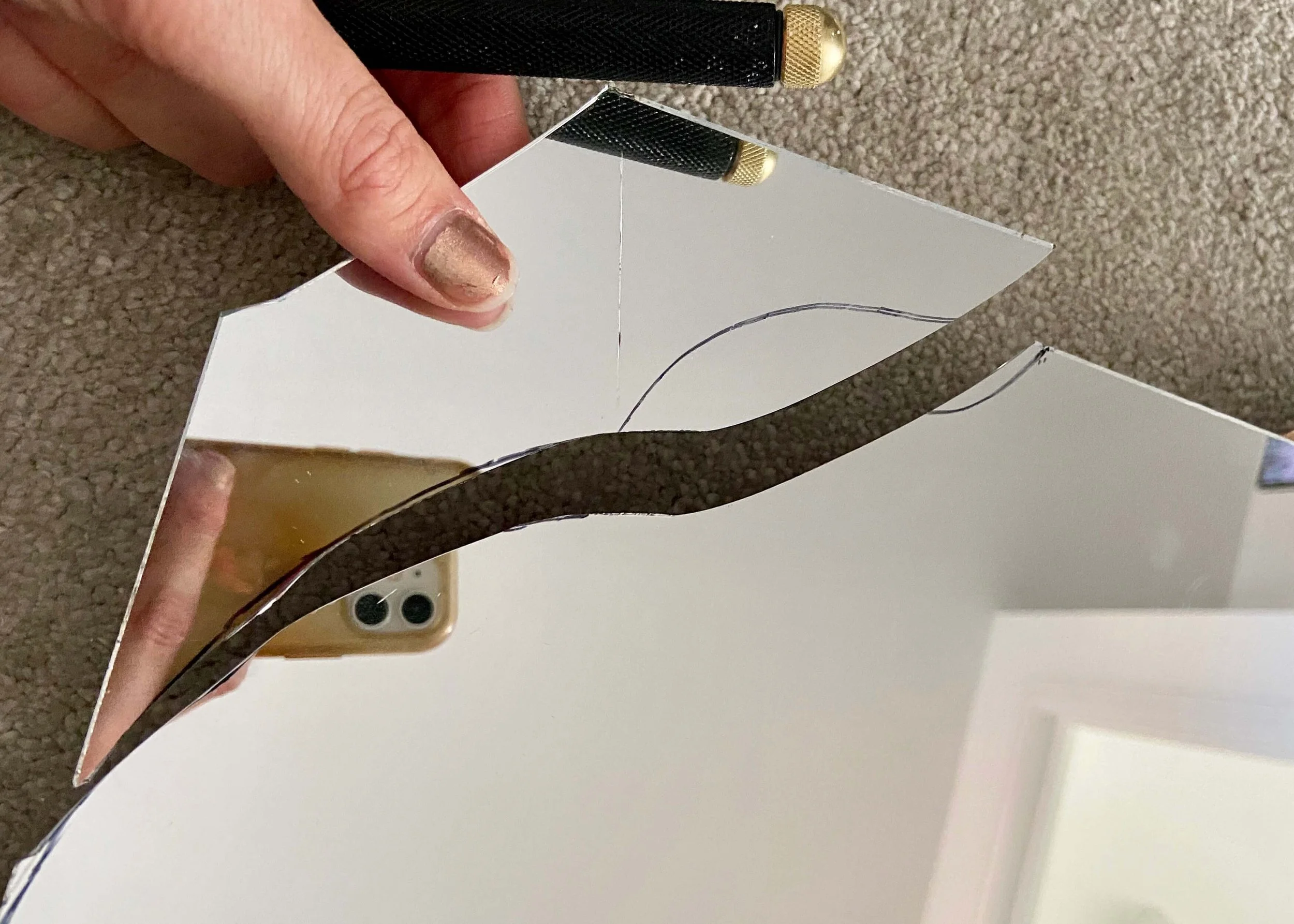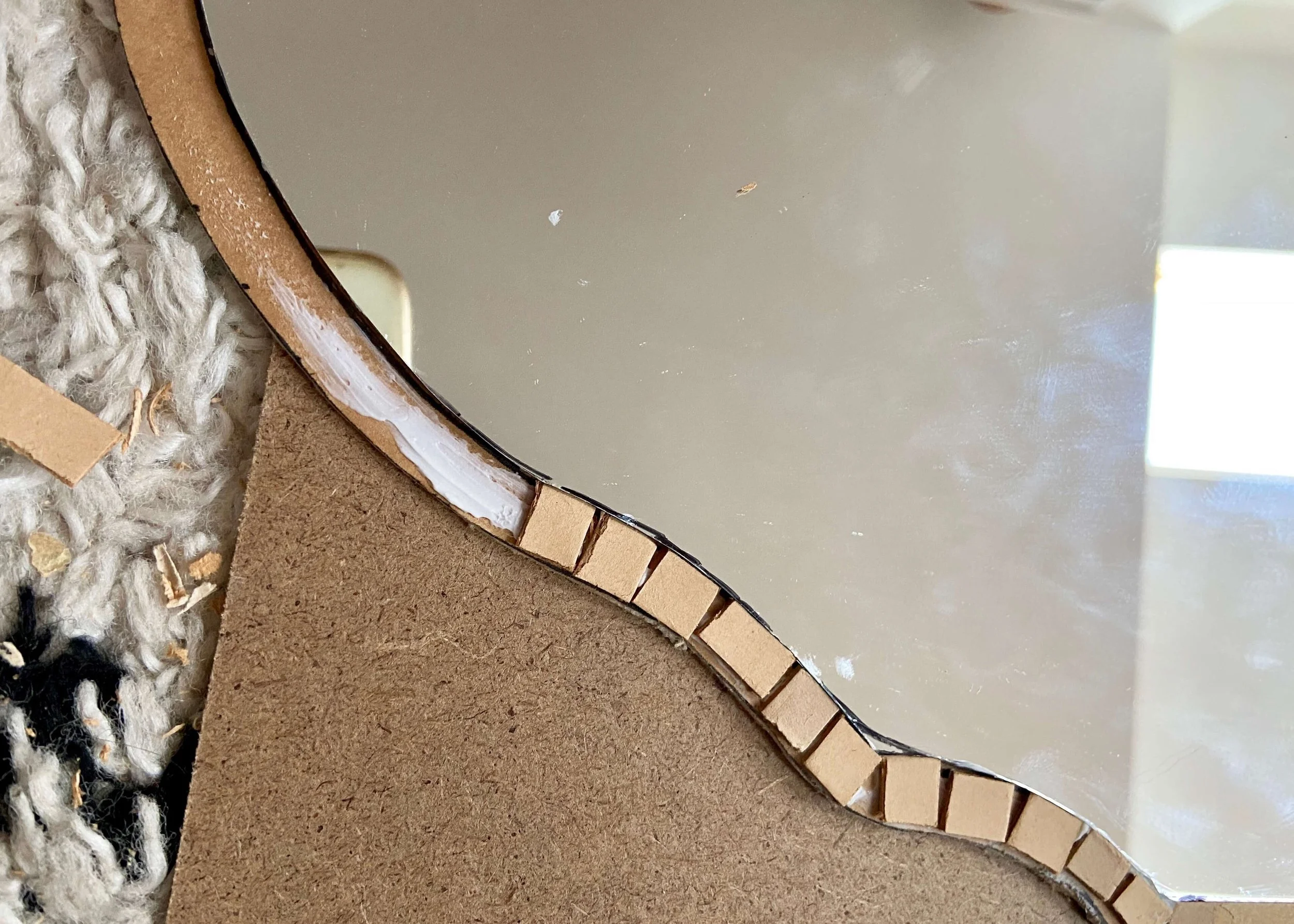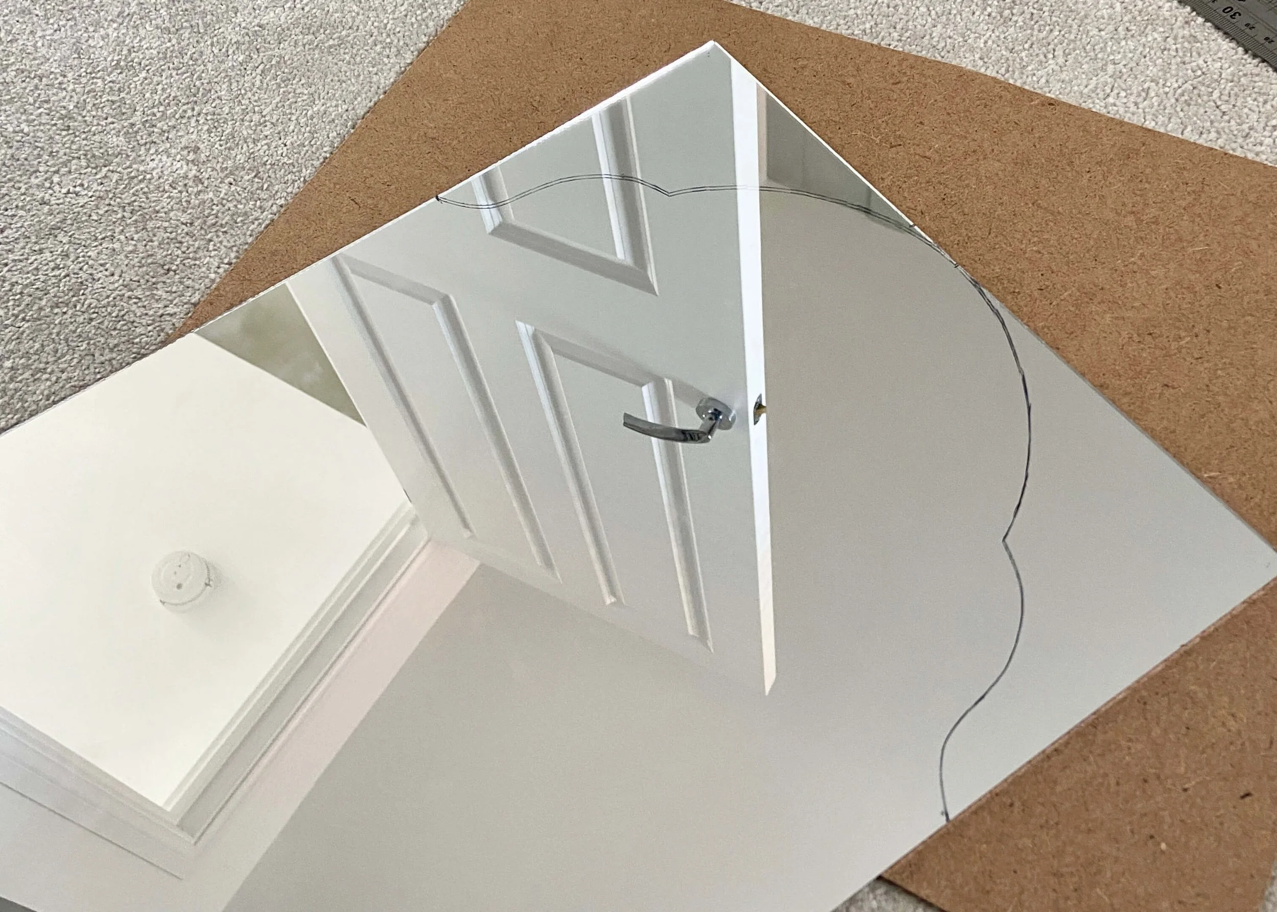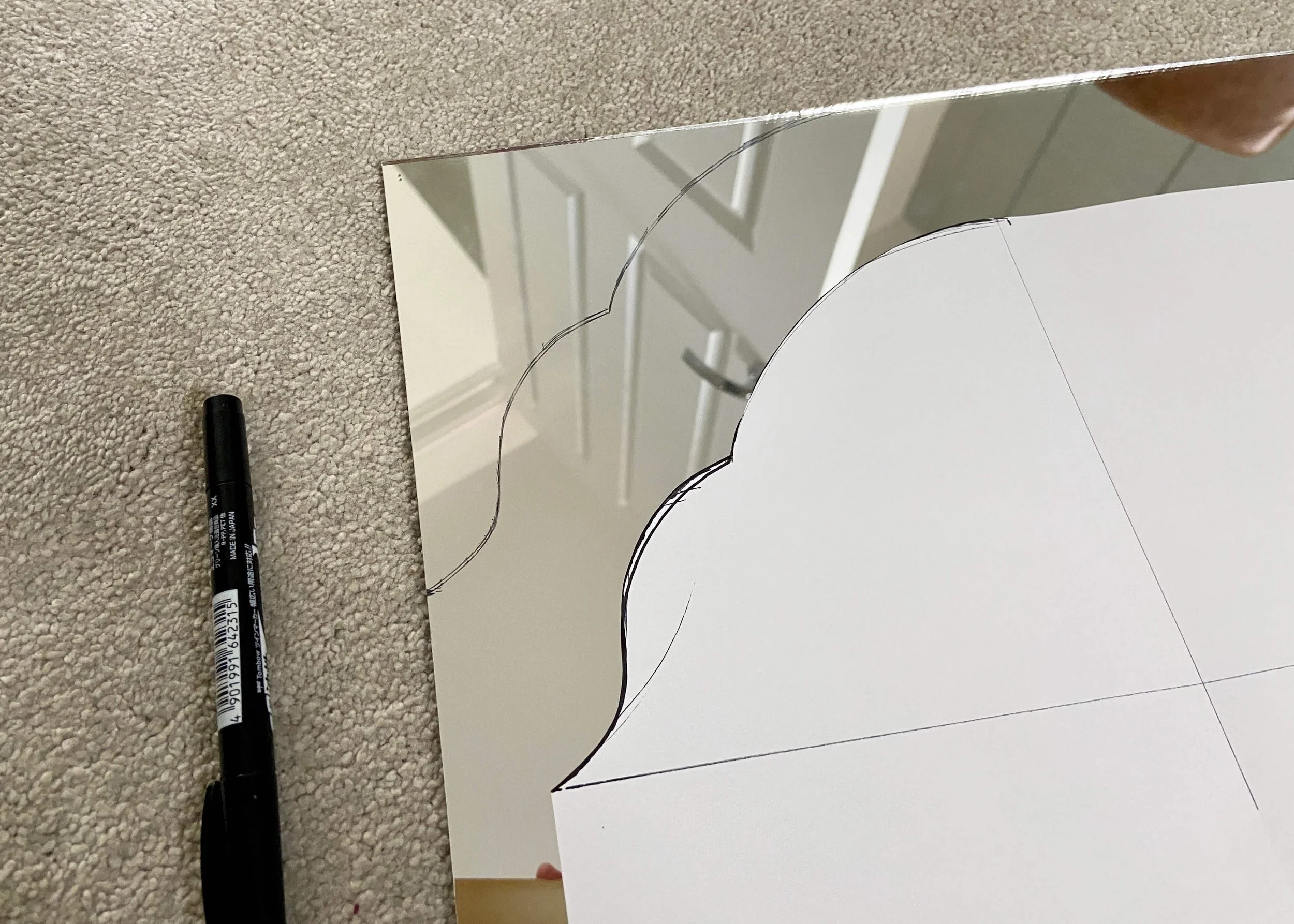 If like me cutting the first side of your mirror doesn’t quite go to plan, trace the first side onto a piece of paper and transfer this shape to the other side. Then cut out this new shape to make your mirror symmetrical.