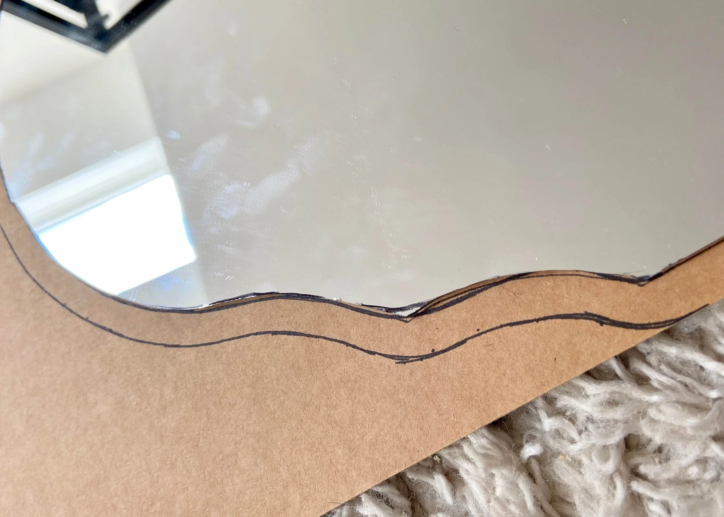 Flip this template over and use it to draw the arch shape on the other half of the mirror. Using the same template will ensure it’s symmetrical.