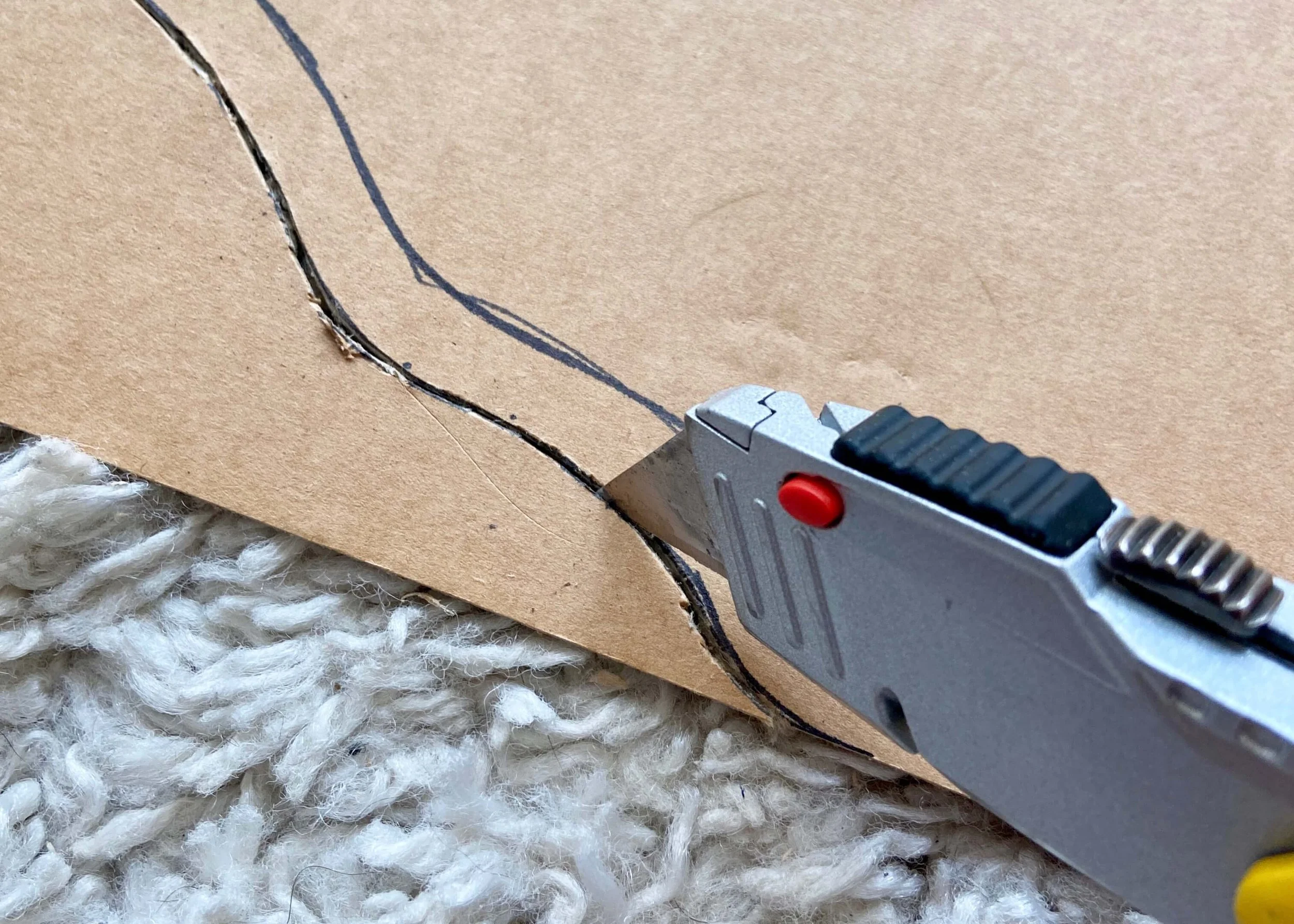 Next, follow the instructions on your glass cutter to score and cut this shape out. I found it helpful to hold my cutter at a 45 degree angle, and to do sections at a time. Be sure to wear eye protection and gloves.
